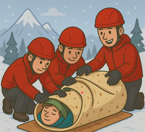 The “burrito” method: Wrapping patients in layers to retain body heat.